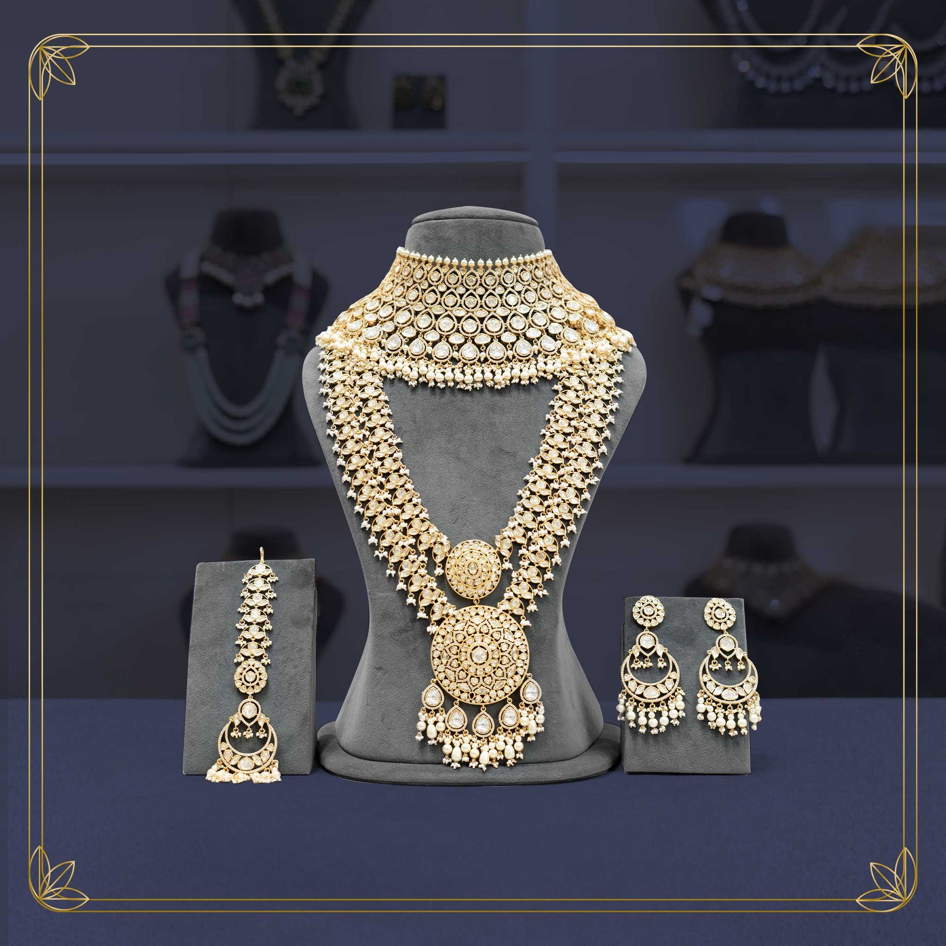 Elegant Kundan Golden Bridal Set with Pearl Accents - Rental